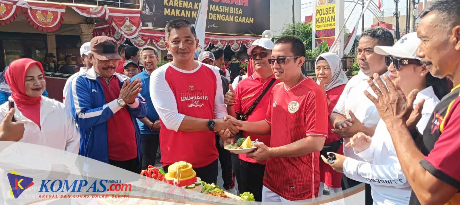 Forkompimca Krian secara sah dan simbolis mengawali pemotongan nasi tumpeng sebagai peringatan HUT Kemerdekaan RI ke 80 dan penyerahan pucuk nasi tumpeng yang diberikan kepada Kapolsek Krian Kompol I GP Atmagiri SH MH dari Camat Krian Ach Fauzy,dan Danramil Krian kapten inf Teguh.