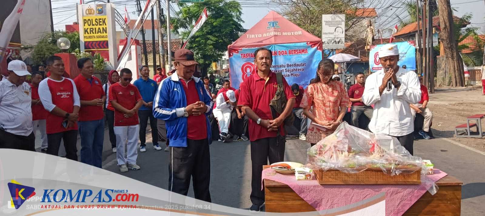 “17 tumpeng Polsek Krian peringati HUT Kemerdekaan RI panjatkan doa bersama dengan kelima lintas Agama wilayah kecamatan Krian.