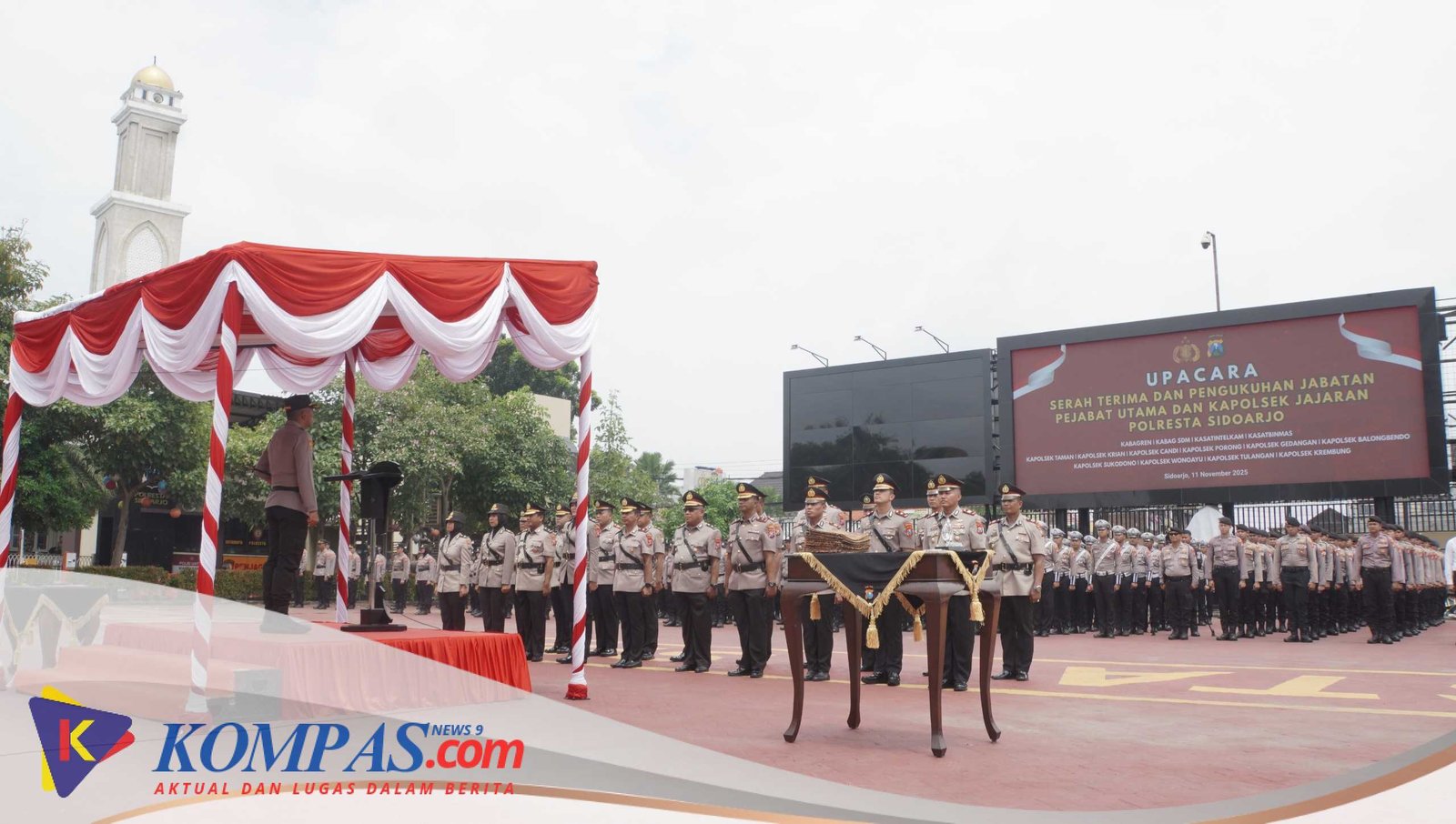 Kompasnews9.com || Sidoarjo – Sejumlah pejabat utama dan kapolsek jajaran Polresta Sidoarjo mengalami penyegaran. Ditandai melalui Upacara Serah Terima Jabatan dipimpin Kapolresta Sidoarjo Komisaris Besar Polisi Christian Tobing, pada Selasa (11/11/2025).