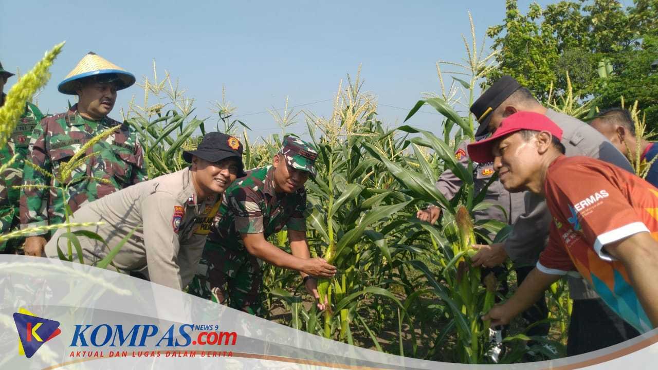 Dalam kesempatan itu seluruh unsur memetik hasil panen bersama para petani.